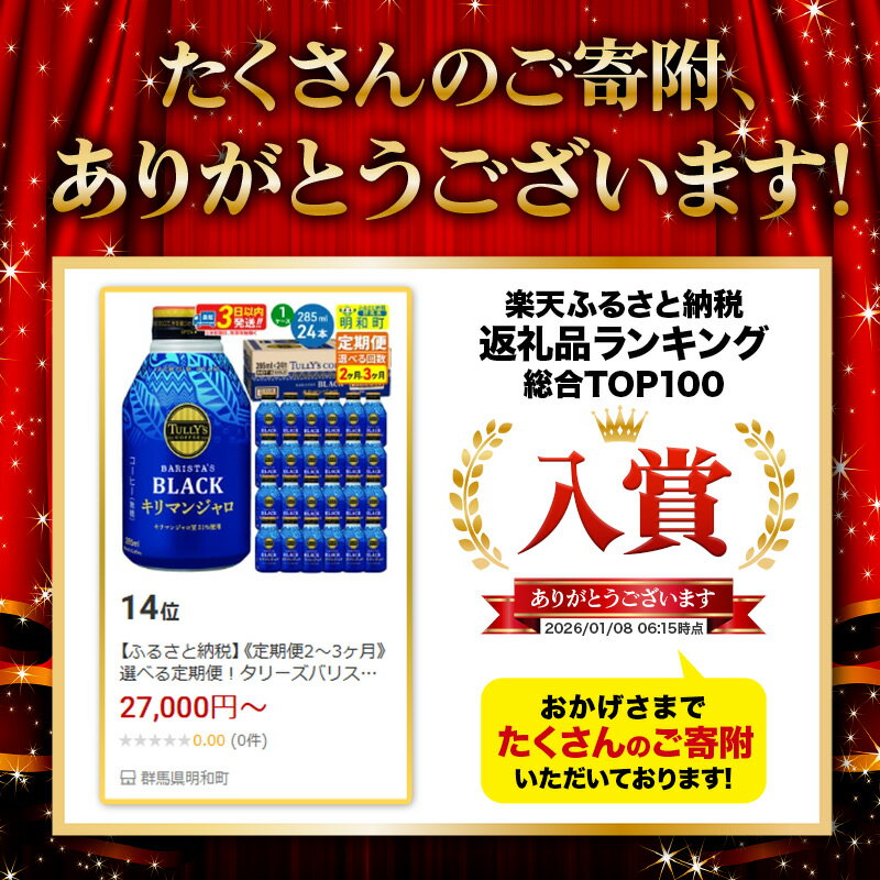 - 【ふるさと納税】《定期便2〜3ヶ月》選べる定期便!タリーズバリスタズブラック キリマンジャロ <285ml×24本>【1ケース】