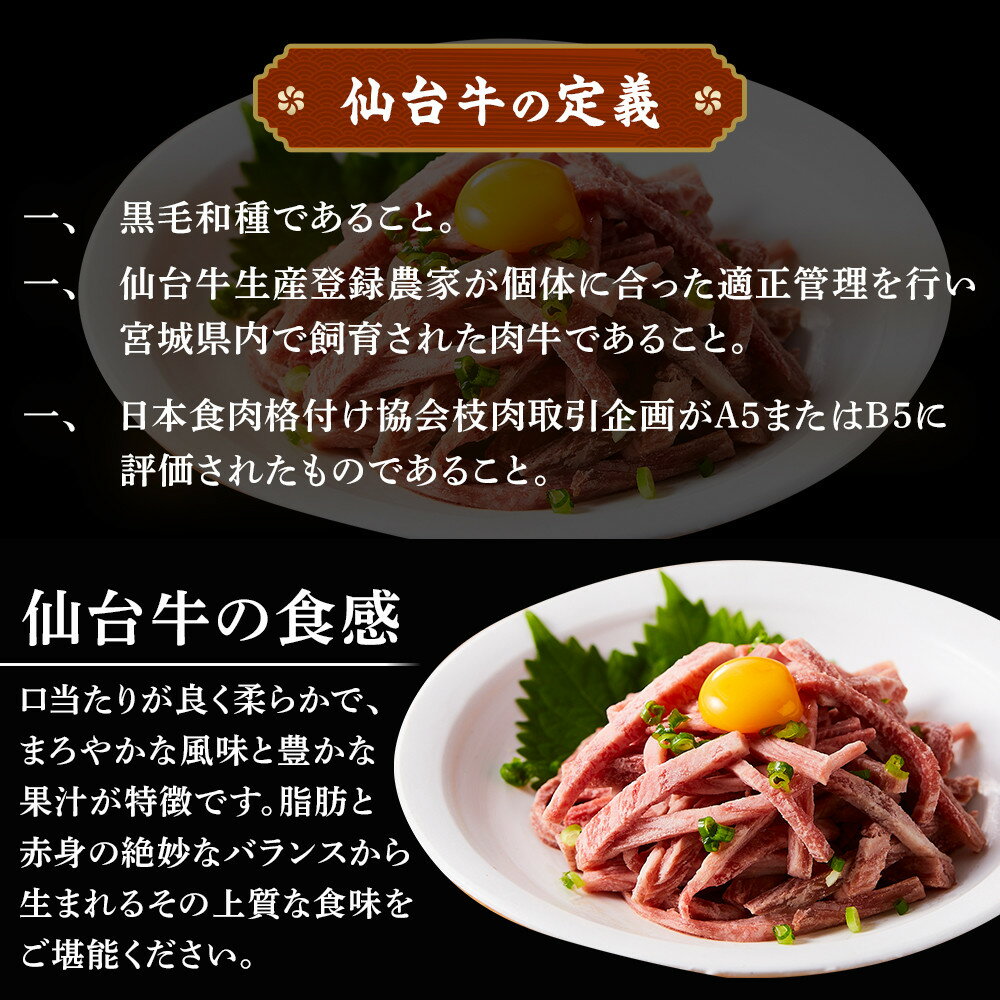 【ふるさと納税】牛肉 仙台牛 ユッケ 160g ( 80g × 2 ) タレ付き | 肉 お肉 にく 牛 冷凍 真空パック あて おつまみ ユッケ丼 人気 おすすめ ごはん おかず 宮城 角田
