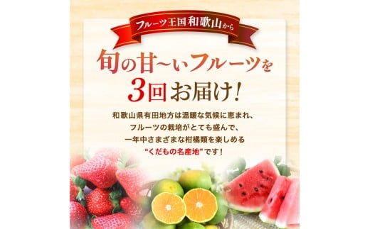 わかやま 旬の くだもの 定期便【S】 全3回 / フルーツ まりひめ いちご 小玉 すいか ※北海道・沖縄・離島への配送不可 (配送日時指定不可)※北海道・沖縄・離島への配送不可 / 定期便 フルーツ みかん いちご すいか 【ard-tkb908】