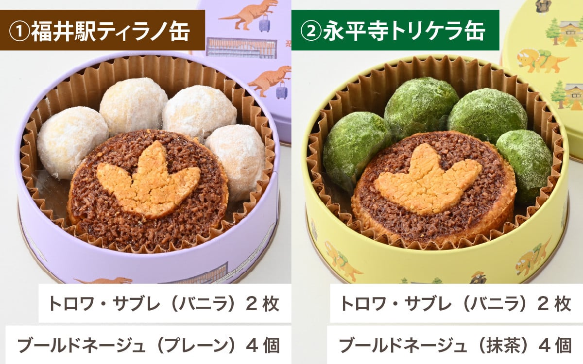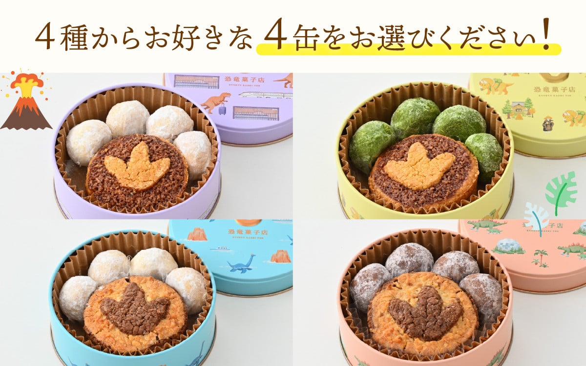 - 恐竜サブレ缶(小)選べるクッキー缶4個/ 恐竜 サブレ お菓子 クッキー 米粉 おかし 洋菓子 詰め合わせ デザート 人気 おすすめ 永平寺 福井 福井県 坐禅 恐竜 北陸 [B-026040]