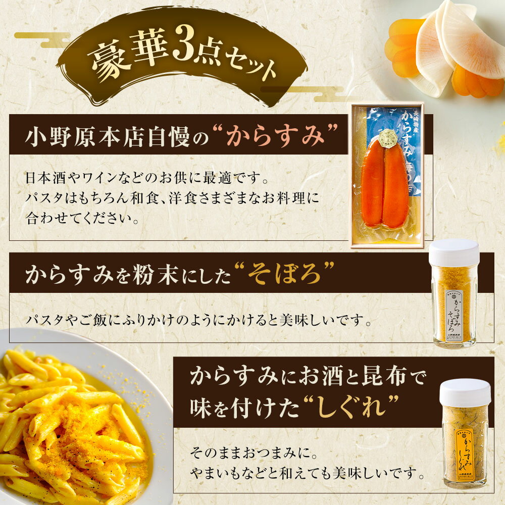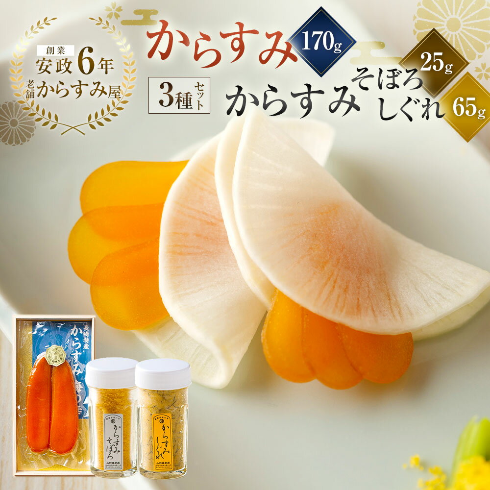 【ふるさと納税】【7営業日以内発送】創業安政6年 老舗からすみ屋の からすみ 170g からすみそぼろ からすみしぐれセット 薄塩 からすみ 魚卵 珍味 おつまみ 贈答用 ギフト 詰め合わせ セット 冷蔵 九州 国産 長崎県 長崎市 送料無料