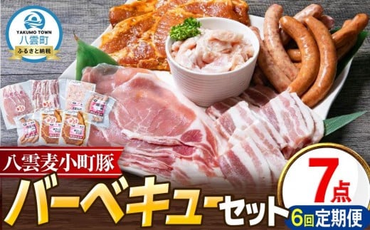 - 【6回定期便】八雲麦小町豚 バーベキューセット7点詰め合わせ(ロース・ソーセージ等)【 ロース ソーセージ 肉 ブランド肉 肉加工品 豚 豚肉 バーベキュー BBQ 焼肉 焼き肉 食品 グルメ お取り寄せ お取り寄せグルメ 八雲町 北海道 】