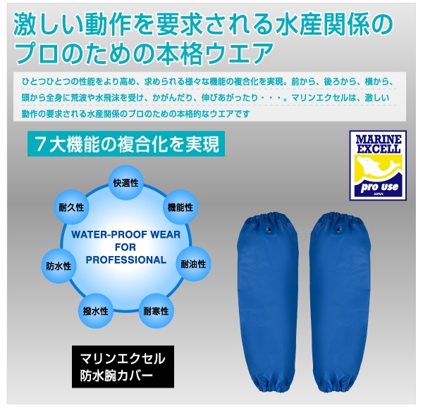 マリンエクセル 防水腕カバー 2点セット 12089001【フリーサイズ カラー:ブルー】 / 作業服 防水加工【logo153】