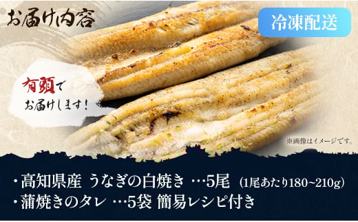 高知県産うなぎの白焼き 180~210g×5尾 - エコ包装 国産 うなぎ 白焼き 鰻 冷凍 高知 yw-0122