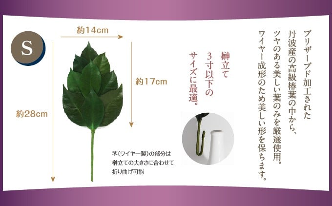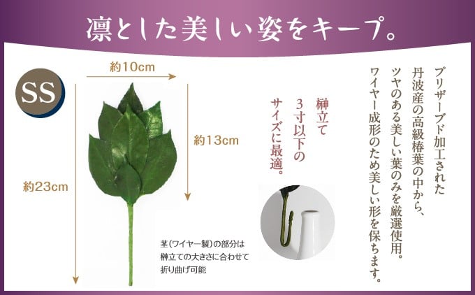 プリザーブド 榊 SS / S / M サイズ (1対 2束)【天然 国産 サカキ 神棚 神具 祭壇 玉串 神事 仏壇 仏花 お供え お墓 お盆 お彼岸 新盆 祭 水かえ不要 枯れない プリザーブドフラワー】