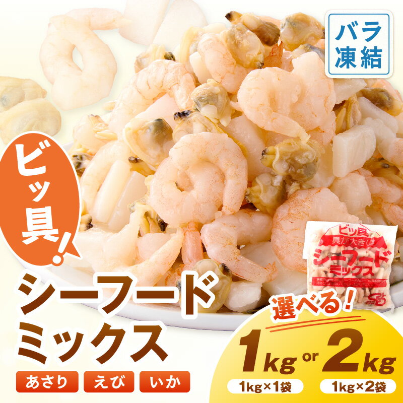 【ふるさと納税】\内容量が選べる/ビッ具!シーフードミックス(えび・あさり・いか) 1kg 2kg