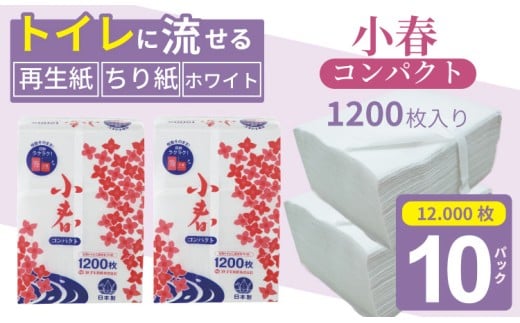 【水洗トイレに流せるちり紙】小春 1200枚 X 10パック