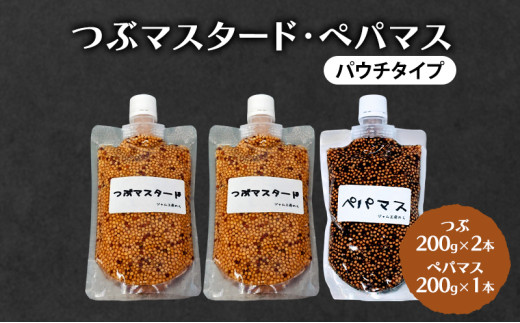 ジャム工房仕込み つぶマスタード(パウチタイプ) 組合せが選べる つぶマスタード200g×2本・ペパマス200g×1本