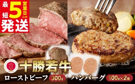 - 【最短5営業日以内に発送】牛肉サミット金賞受賞!十勝若牛のローストビーフ・ハンバーグセット 国産 小分け 簡単調理 惣菜 おかず ハンバーグ お弁当 焼くだけ 牛肉 牛 肉 ローストビーフ ブランド牛 冷凍_S003-0025
