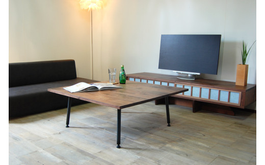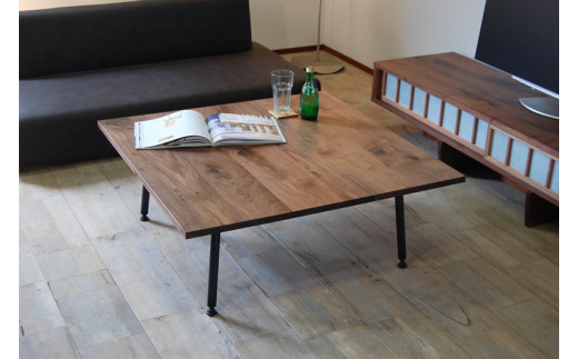 - 【無垢天板&シンプル鉄脚デザイン】TEZUローテーブル 90 ウォールナット