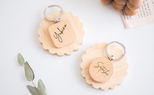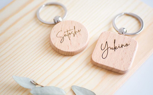 - 木製ネーム刻印キーホルダー (6個セット) 名入れ ペア 木製 キーホルダー セット ストラップ キーリング 贈り物 ギフト F20E-964
