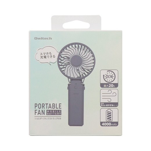 Owltech しっかりとした風 おやすみモード搭載 5段階風量調節 約20時間使用可能 モバイルバッテリー機能搭載 ポータブルファン OWL-HF07-NV【 ガジェット 海老名市 】