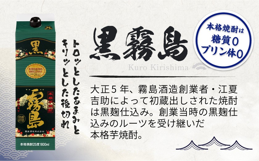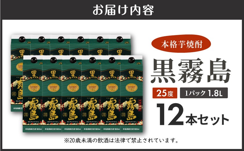 - 黒霧島パック(25度)1.8L×12本_AN-3801_ (都城市) 本格芋焼酎 霧島酒造 くろきりしま 一升パック 紙パック焼酎 黒麹仕込み トロッとキリッと お酒/アルコール 家飲み/宅飲み