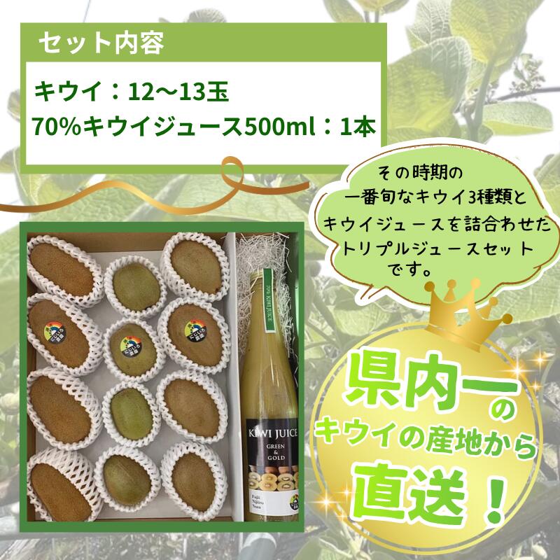 【ふるさと納税】【先行予約】 キウイ フルーツ 食べ比べ アソート 3種 約1.4kg & キウイジュース 500mlセット(果汁70%) 阿武町産 キウイトリプル ジュースセット フルーツ 果物詰め合わせ 《お届け:2025年11月14日頃~2026年1月31日頃 出荷予定》 山口県 阿武町
