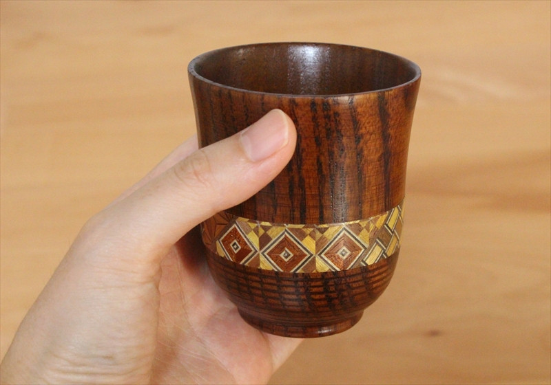 【箱根寄木細工 夫婦湯呑2組セット】寄木を配した大小の木製湯呑は軽くて割れにくく、揃いの湯呑としてお使いいただけます。【 キッチン用品 食器 雑貨 日用品 木製食器 職人メイド 工芸品 職人の手作り おしゃれ食器 神奈川県 小田原市 】 142069_CW051