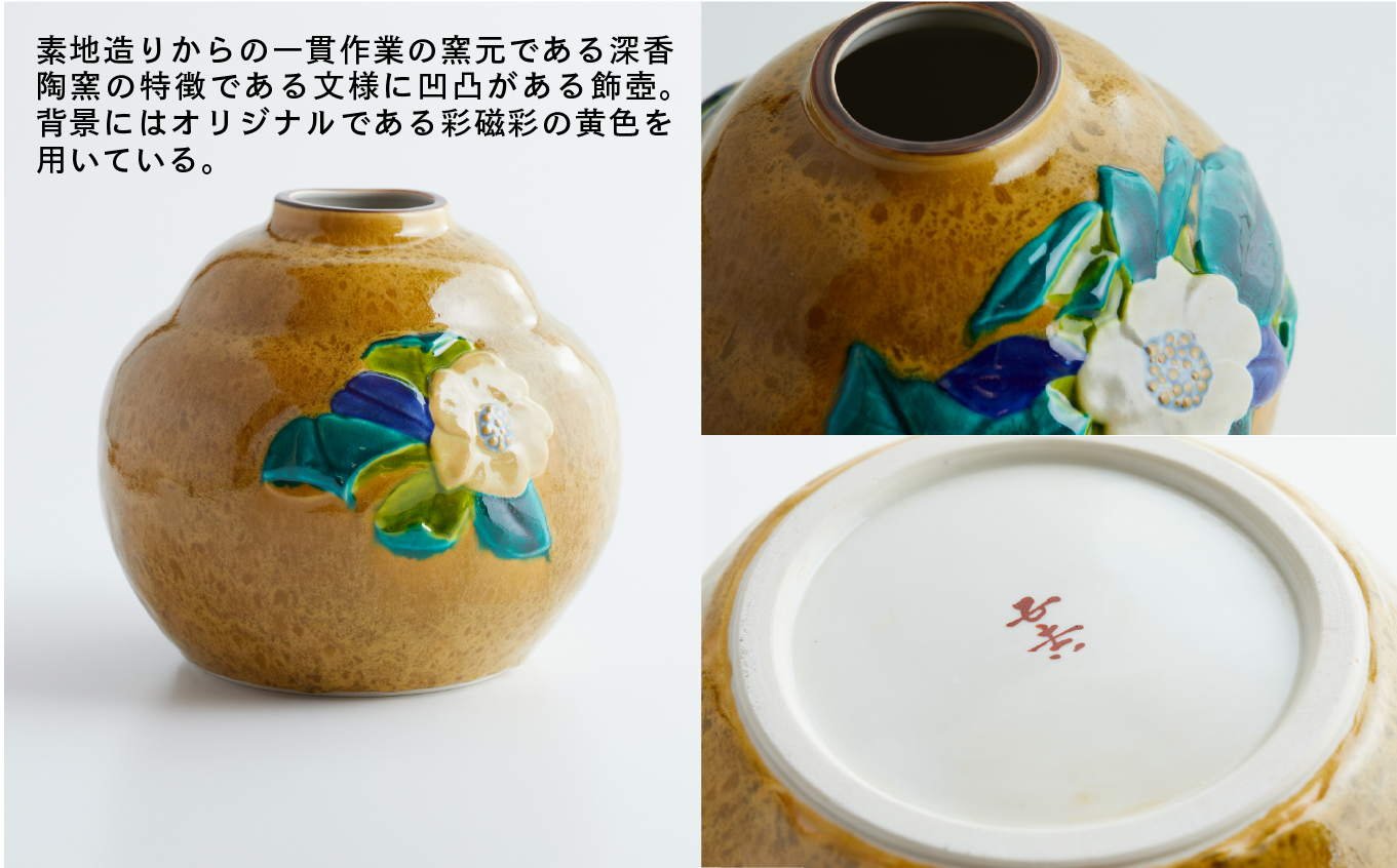 九谷焼「飾壺 彩磁彩 椿寿」三代浅蔵五十吉 A00021