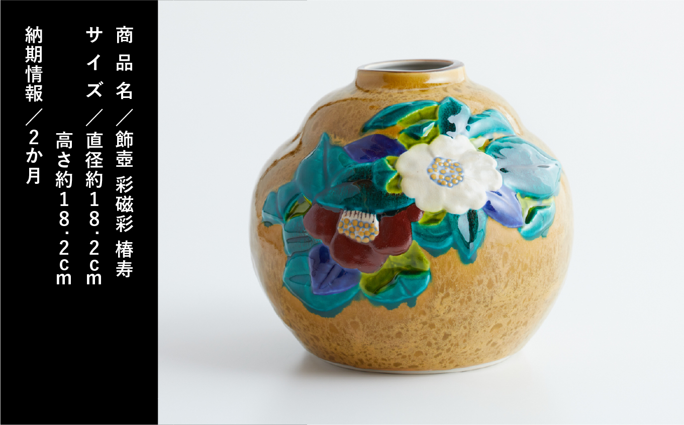 - 九谷焼「飾壺 彩磁彩 椿寿」三代浅蔵五十吉 A00021