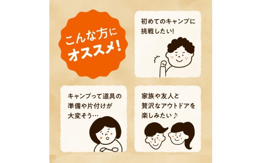 - S172-014_家族みんながくつろげる!広々リビング&2寝室付きキャンプセット(5名様 2泊3日 キャンプ使用料・設営撤収お手伝い込)
