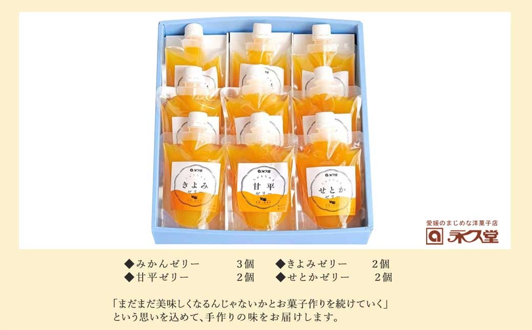 フルーツゼリー ちゅるちゅるゼリー 柑橘 4種 合計9個 セット みかん 甘平 きよみ せとか 柑橘王国愛媛 永久堂