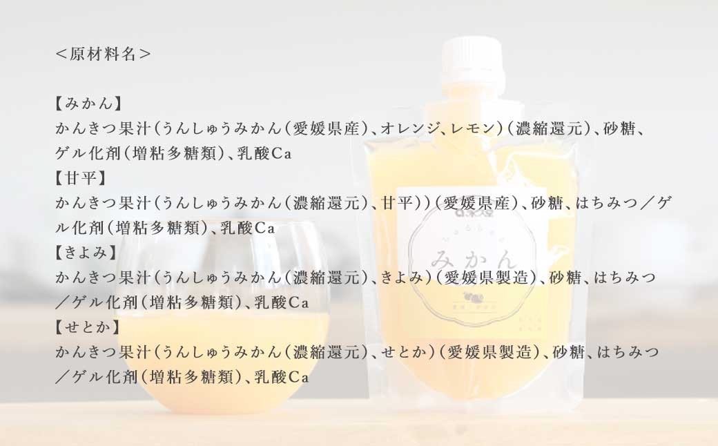 【ふるさと納税】人気品種を厳選!みかん寒天ゼリー食べ比べセット 4品種×2本 計8本 【C25-31】_ ゼリー 寒天 デザート スイーツ セット みかん ミカン 柑橘 フルーツ 果物 くだもの 愛媛 飲むゼリー 産直 産地直送 国産 おやつ 無着色 無香料 食べ比べ 【1502355】