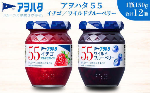 【アヲハタジャム】いちご / ブルーベリー 各6瓶 55ジャム 合計12瓶(1瓶150g) ジャム ママレード マーマレード 果物 フルーツ いちごジャムブルーベリー