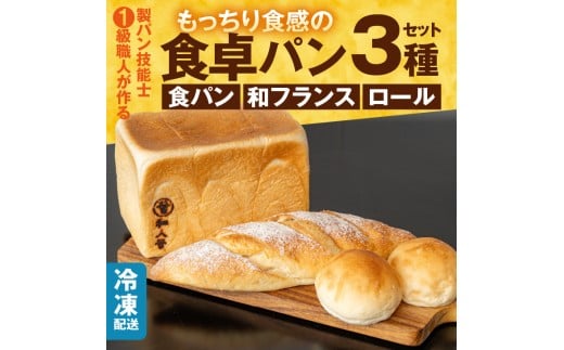 パン 食べ比べ 奥州食パン「和人号」「和フランス」「小昼(こびる)ロール」 シンプルな食卓パンセット 無添加 岩手県産小麦 奥州市産地養卵 アカシア蜂蜜使用 国産 冷凍発送 もちもち 南部鉄器 夢楽のパン工房 Yadorigi [BH004]