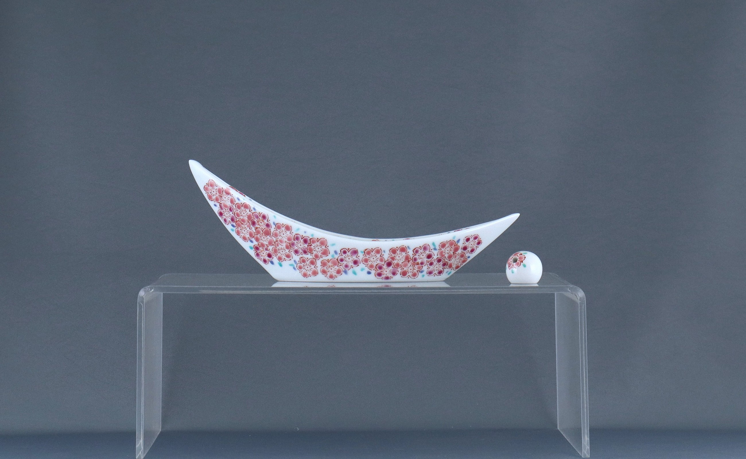 有田焼 舟形お香立〈花集文〉【赤絵白磁硯処 雪月花】手描き 伝統工芸 お香立て 花柄 赤絵 40000円 4万円 A40-369