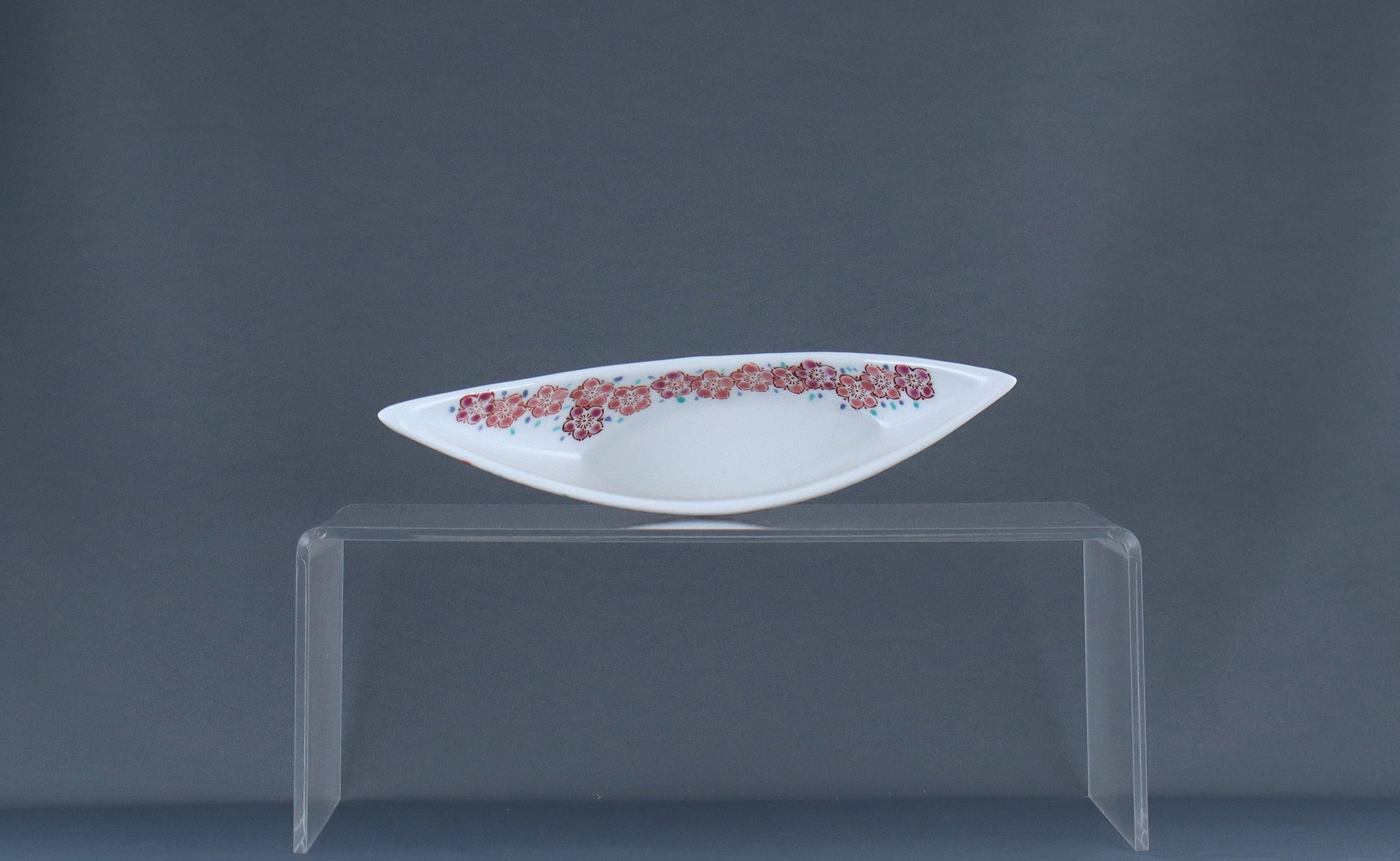 - 有田焼 舟形お香立〈花集文〉【赤絵白磁硯処 雪月花】手描き 伝統工芸 お香立て 花柄 赤絵 40000円 4万円 A40-369