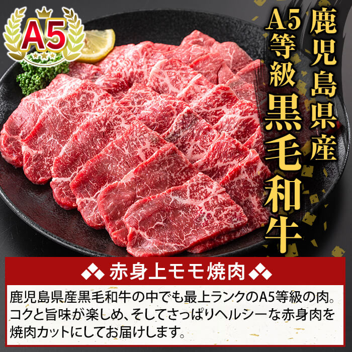- 【ふるさと納税】<選べる容量>鹿児島県産A5等級黒毛和牛赤身上モモ焼肉(計250g〜750g) 牛肉 国産 鹿児島県産 モモ 焼肉 肉 精肉 小分け 【ふるさと産直バザール】