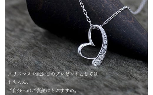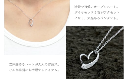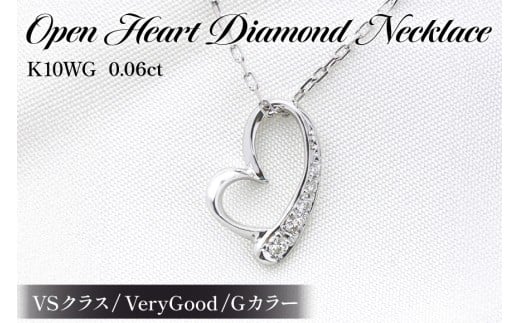 - ネックレス K10WG ホワイトゴールド オープンハート ダイヤモンド 0.06ct 10金 レディース ペンダント 10金 【f062-k10wg】 [オーダーメイドジュエリーメイ 山梨県 韮崎市 20745091]