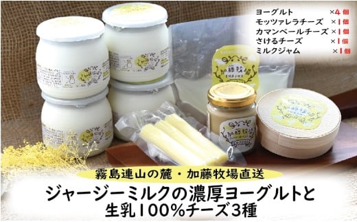 【霧島連山の麓・加藤牧場直送】ジャージーミルクの濃厚ヨーグルトと生乳100%チーズ3種(国産 ナチュラルチーズ ヨーグルト 乳製品 牛乳 チーズ コンテスト受賞 人気 霧島 宮崎 小林市 地域限定)