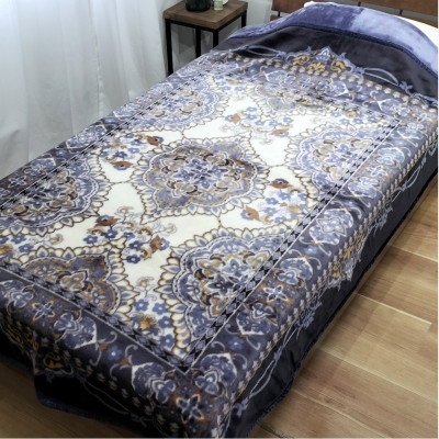 泉大津市産 マイヤー綿毛布 シングルサイズ 更紗2 ブルー 82717 BL[0389]