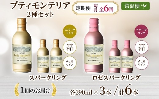- 【定期便】6ヶ月連続 プティモンテリア スパークリング 2種 飲み比べ 290ml 6本入 モンデ酒造 缶ワイン ワイン 白 ロゼ 酒 お酒 送料無料 山梨県 笛吹市 177-4-160-b