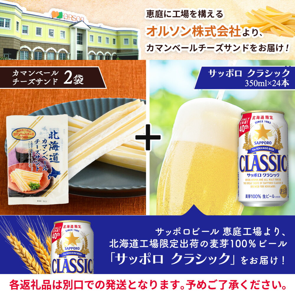 - 【ふるさと納税】カマンベールチーズサンド 50g×2袋 サッポロクラシック 350ml 24本 コラボ 返礼品 チータラ チーズ 鱈 おつまみ 珍味 サッポロビール クラシック ビール 生ビール ふるさと納税 北海道 恵庭市 恵庭【C99003】