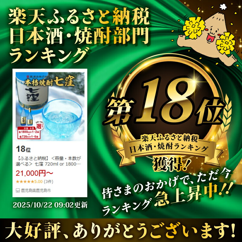- 【ふるさと納税】<容量・本数が選べる> 七窪 720ml or 1800ml 1~6本 セット 芋焼酎 焼酎 ななくぼ 食中酒 ロック 水割り ソーダ割り 炭酸割り さつまいも 米麹 フルーティ 晩酌 アルコール お取り寄せ お土産 ご当地 東酒造 鹿児島 おすすめ ランキング プレゼント ギフト
