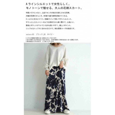 【ふるさと納税】【ANTIQUA/アンティカ】花柄 ロングスカート ボトムス ブラック(KE-03260-05-F)【1639354】