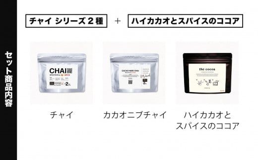 - 【レビューキャンペーン実施中】【金沢発 INSPICE】「チャイ(1個)/カカオニブチャイ(1個)/ ハイカカオとスパイスのココア(1個) セット」