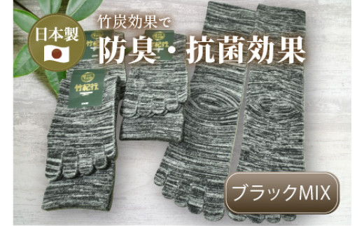 - 竹紀行5本指タウンソックス(ブラックMIX4足)《 送料無料 おすすめ 靴下 保湿 消臭 抗菌 肌に優しい 履き心地抜群 5本指ソックス 父の日 》【2401T02309_03】