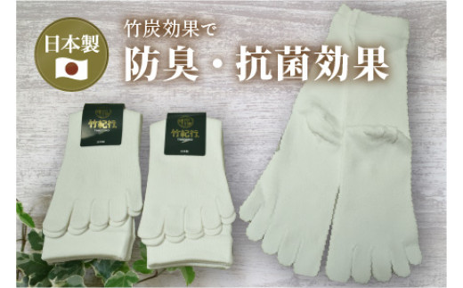 竹紀行5本指サポートソックス(ホワイト3足)《 防臭 抗菌 冷え性 父の日 サポートソックス くつした おすすめ プレゼント ギフト 5本指ソックス 贈答 送料無料 》【2401T02308_02】