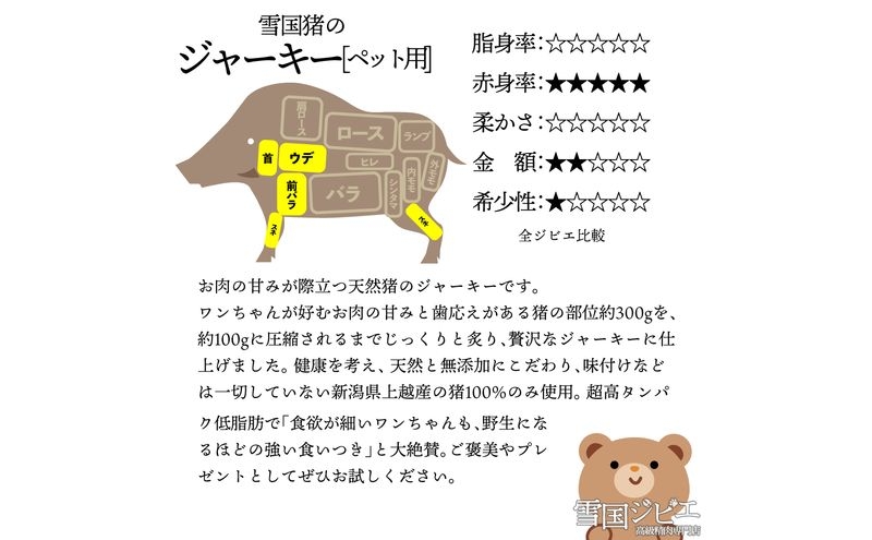 (ペット用)【雪国ジビエ】雪国イノシシ ペット用ジャーキー 100g 肉 イノシシ 猪 猪肉 新潟 新潟県産