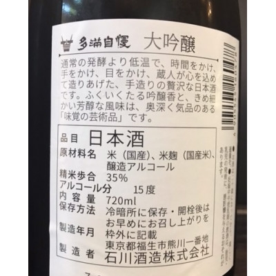 福生の地酒 多満自慢(大吟醸) 720ml 1本【1624443】
