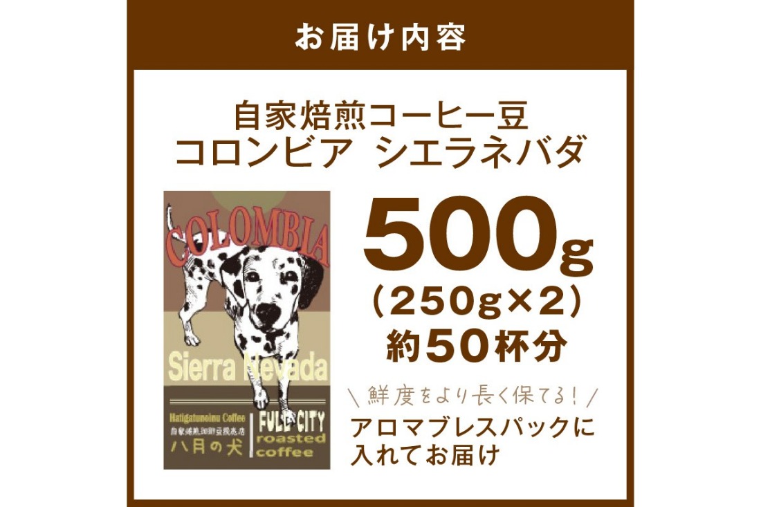 - 【栽培期間中農薬不使用】自家焙煎コーヒー豆 コロンビア シエラネバダ 500g(250g×2) 約50杯分 小分け 豆・粉 選べる HA00026