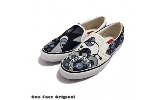 - 手描きスニーカー「ジョーヌQスリッポン」22.5cm モノクロタイプ アシンメトリー【受注制作】