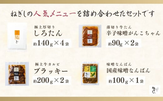 - ねぎし お肉3種 食べ比べセット 味噌なんばん付 9袋 | ねぎし 牛たん しろたん 牛肉 肉 ブラッキー がんこちゃん 味付けとろろ 鉄板焼き 冷凍 株式会社ねぎしフードサービス通信販売店 埼玉県 狭山市