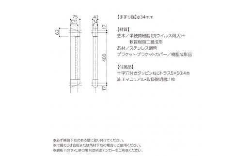 - 住宅向け手すりソフトハンドP-34V/I-40/#04ソフトブラック