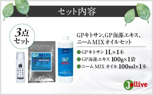 L02-037 GPキトサン1L×1本、GP海藻エキス100g×1袋、ニームMIXオイル100mL×1本