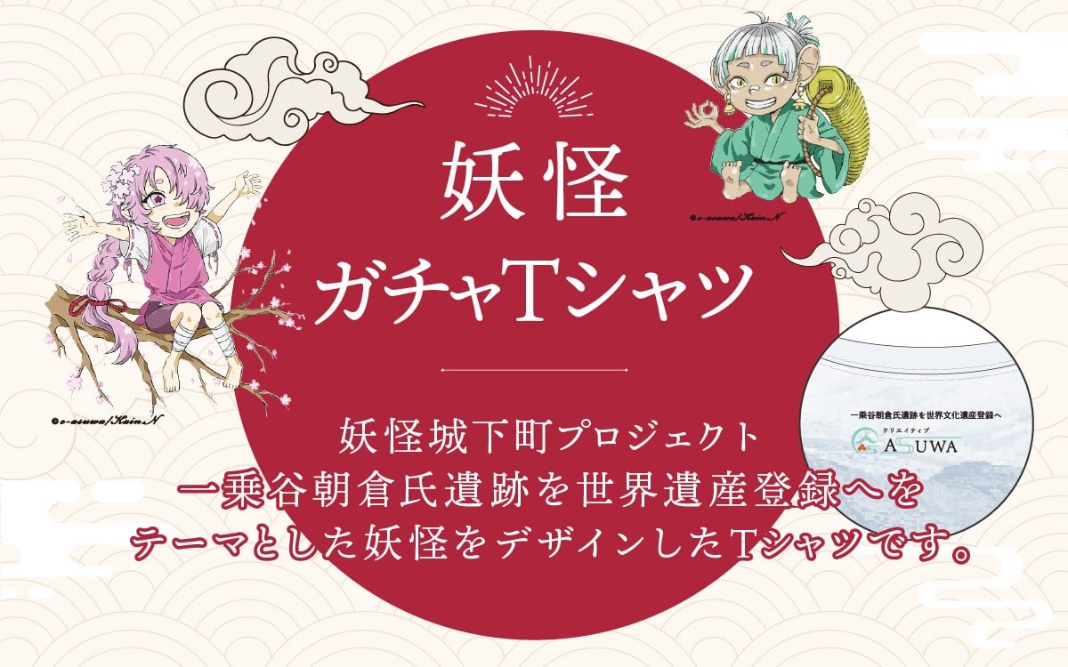 妖怪【ガチャ】Tシャツ 2枚セット [A-179001] / 指定可 妖怪 Tシャツ 不思議 オリジナル イラスト 町おこし 朝倉 歴史 一乗谷 日本 文化 クリエイティブ あすわ 足羽 セット ふるさと納税