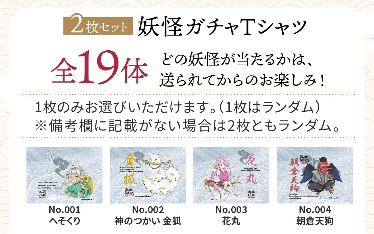 - 妖怪【ガチャ】Tシャツ 2枚セット [A-179001] / 指定可 妖怪 Tシャツ 不思議 オリジナル イラスト 町おこし 朝倉 歴史 一乗谷 日本 文化 クリエイティブ あすわ 足羽 セット ふるさと納税
