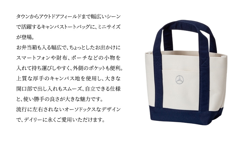 - ミニトートバッグ キャンバス ホワイト/ネイビー メルセデス ベンツ [№5346-1565]