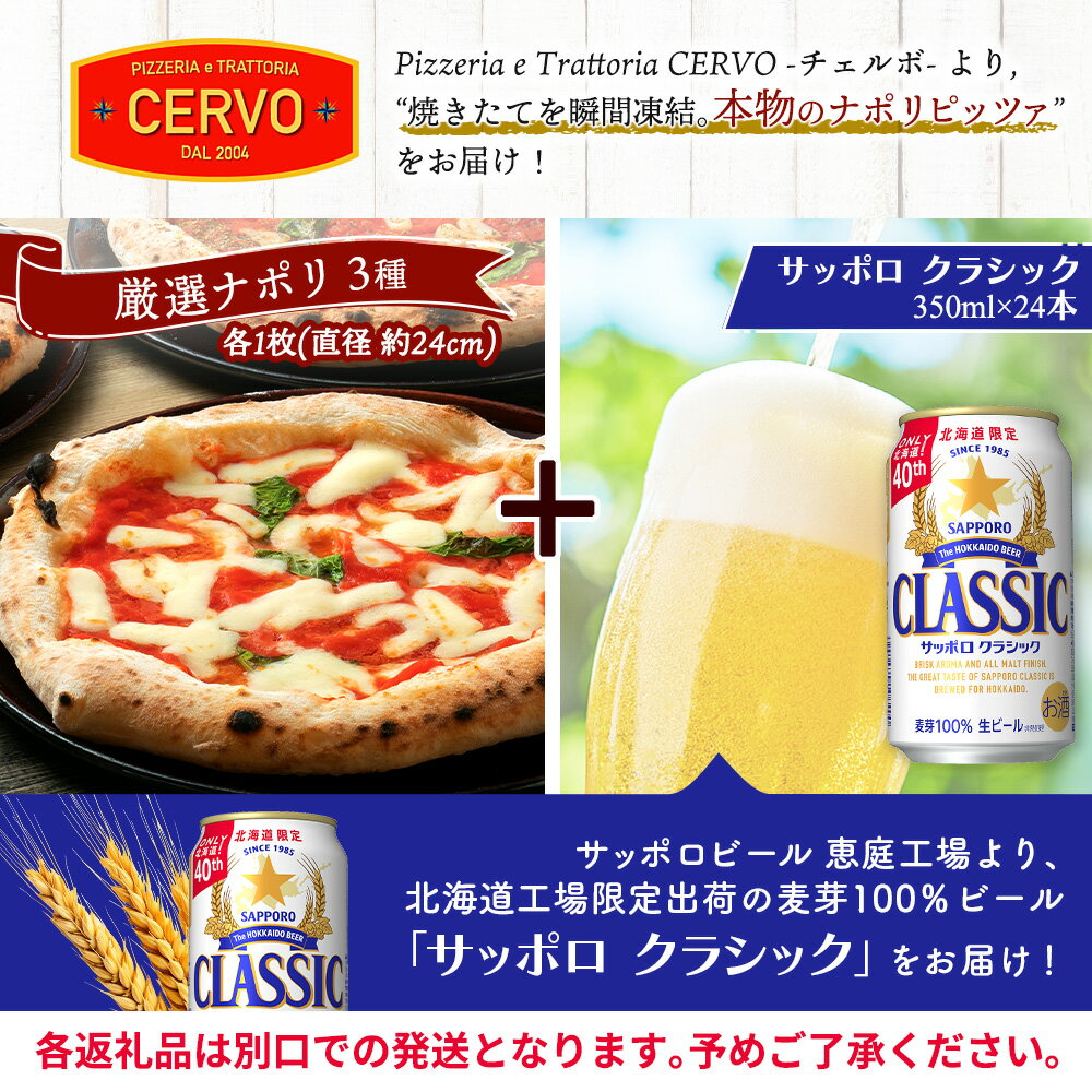 - 【ふるさと納税】石窯ピッツァ 3枚 マルゲリータ サッポロクラシック 350ml 24本 コラボ 返礼品 ピザ 石窯ピザ ナポリピッツァ サッポロビール サッポロ クラシック ビール 生ビール ふるさと納税 北海道 恵庭市 恵庭 【C99006】【C99006】